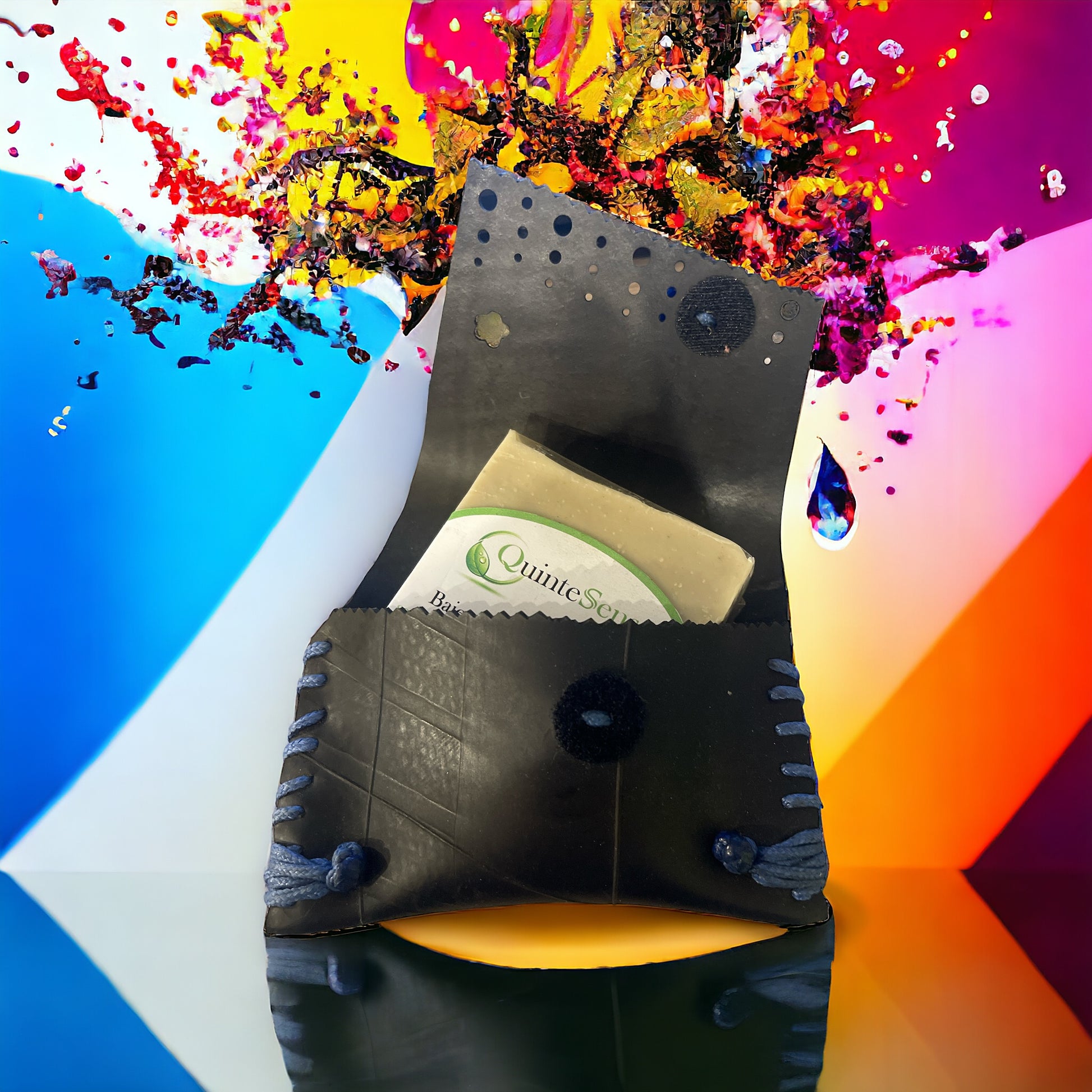 Bienvenue dans l'univers enchanteur des Joyaux d'Angela, où la magie opère au service de l'éthique et de l'écologie. En exclusivité pour notre gamme de savons QuinteSens, la créatrice talentueuse réalise des pochettes à savon uniques, confectionnées avec amour à partir de chambres à air recyclées.